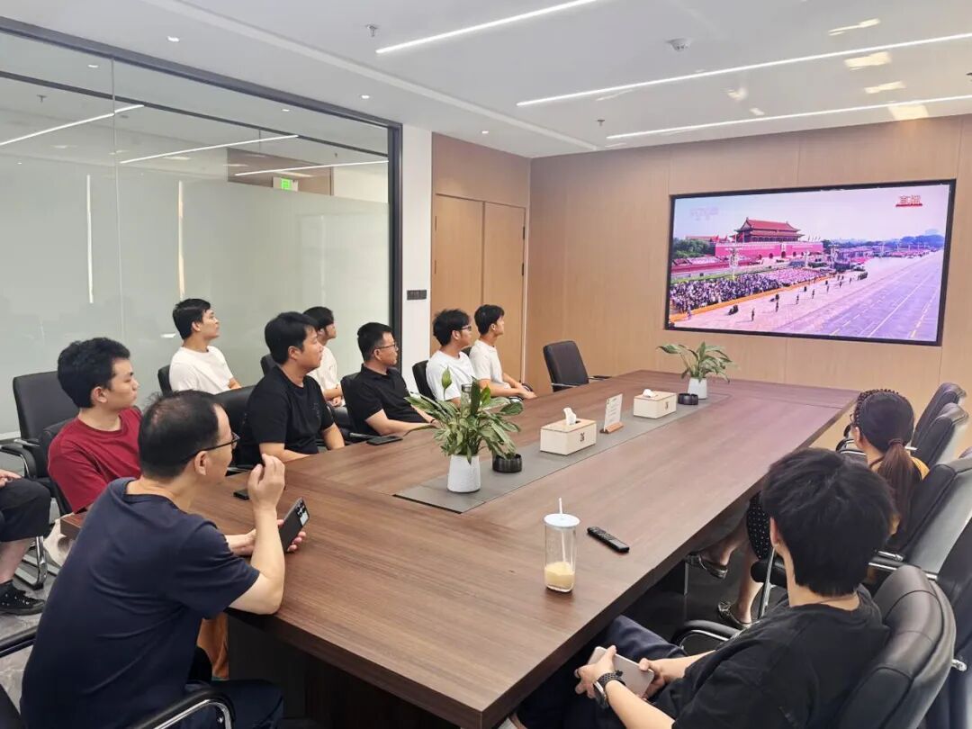 新大樓各層會議室現(xiàn)場氣氛莊重,全體黨員及職工認(rèn)真聆聽習(xí)近平主席重要講話。當(dāng)閱兵儀式開始時,大家不時為受閱部隊的雄壯陣容和先進(jìn)裝備贊嘆鼓掌,由衷為祖國日益強(qiáng)大的綜合國力與國防力量感到自豪。觀看結(jié)束后,黨員們深受震撼、心潮澎湃,一致認(rèn)為這場閱兵不僅展示了國威軍威,更彰顯了中華民族百折不撓、團(tuán)結(jié)奮進(jìn)的偉大精神。