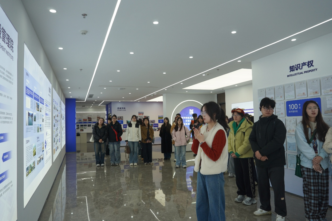 這場研學(xué)在水院展廳拉開序幕。在講解員的引導(dǎo)下,研學(xué)團(tuán)通過豐富的圖文資料,在展廳沉浸式了解我院的發(fā)展歷程、成果業(yè)績、企業(yè)文化,全方位感知我院在涉水產(chǎn)業(yè)、科技創(chuàng)新、團(tuán)隊(duì)建設(shè)等領(lǐng)域的綜合實(shí)力與發(fā)展成果。每一塊展板都在訴說著寧波院人砥礪前行的故事,讓同學(xué)們對水利行業(yè)有了更直觀、更深刻的認(rèn)識。