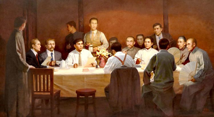 7月23日晚,中國共產(chǎn)黨第一次全國代表大會(huì)在上海法租界望志路106號(hào)(今興業(yè)路76號(hào))正式開幕。會(huì)址設(shè)在李書城、李漢俊兄弟住宅,大家圍坐在客廳長餐桌四周,室內(nèi)沒有特別布置,陳設(shè)簡單,氣氛莊重。出席者有上海的李漢俊、李達(dá);北京的張國燾、劉仁靜;長沙的毛澤東、何叔衡;武漢的董必武、陳潭秋;濟(jì)南的王盡美、鄧恩銘;廣州的陳公博;留日學(xué)生周佛海以及陳獨(dú)秀委派的包惠僧。陳獨(dú)秀和李大釗因公務(wù)在身未出席會(huì)議,而在代表們心目中他們?nèi)允屈h的主要?jiǎng)?chuàng)始人和領(lǐng)袖。