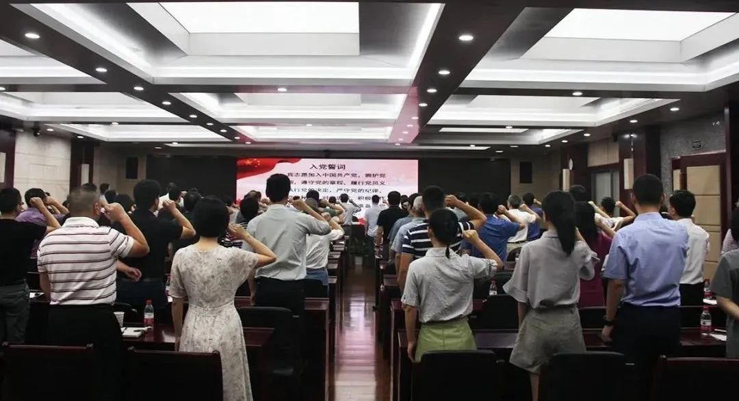 隨著雄壯激昂的《義勇軍進(jìn)行曲》歌聲響起,市水利局迎接建黨99周年紀(jì)念大會(huì)正式拉開(kāi)帷幕。“我志愿加入中國(guó)共產(chǎn)黨……” 全體黨員昂首挺胸,高舉右手,一起重溫入黨的錚錚誓言。會(huì)議現(xiàn)場(chǎng),宣誓儀式氣氛莊嚴(yán)。