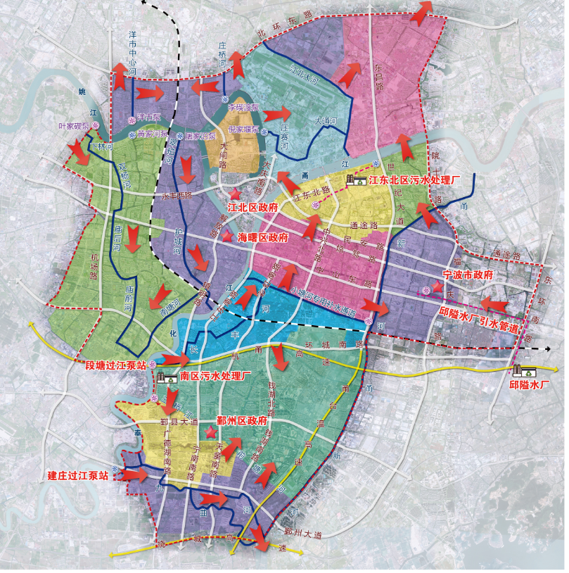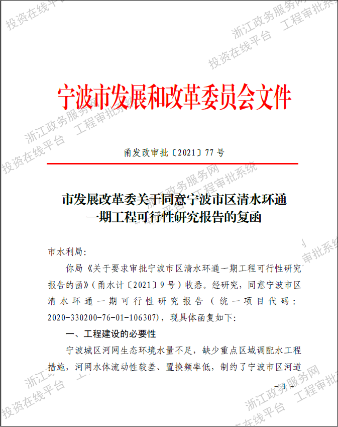 寧波市區(qū)清水環(huán)通一期工程西起機場高架、東至福慶路,北起北環(huán)高架,南至鄞州大道,面積合計約146km2,是寧波市區(qū)重要的河網(wǎng)引配水工程,亦是緩解老城內澇壓力的有力舉措。為提升河網(wǎng)環(huán)境用水量、促進水系互聯(lián)互通、改善水體流態(tài),寧波市區(qū)清水環(huán)通一期工程創(chuàng)新性的引入“精準補水、高速水路”的計理念,切實解決了寧波城區(qū)現(xiàn)狀大水漫灌的河網(wǎng)調水模式下調水效率低下、補水針對性不強等痛點、難點問題。該工程可研報告于2021年5月獲寧波市發(fā)展和改革委員會批復。