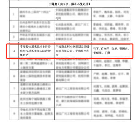 近日,浙江省水土保持學(xué)會(huì)第三屆優(yōu)秀設(shè)計(jì)評(píng)選獲獎(jiǎng)名單出爐,15個(gè)獲獎(jiǎng)工程中,我院成功鎖定一席!此次我院受寧海縣水利局委托開展實(shí)施的寧海縣飲用水源地上游香榧經(jīng)濟(jì)林水土流失防治措施研究榮獲三等獎(jiǎng)。該獎(jiǎng)項(xiàng)由浙江省水土保持學(xué)會(huì)設(shè)立,每?jī)赡暝u(píng)審一次,通過對(duì)水土保持規(guī)劃設(shè)計(jì)領(lǐng)域中取得優(yōu)異成績(jī)的集體和個(gè)人進(jìn)行表彰,從而推動(dòng)全省水土保持行業(yè)的發(fā)展。