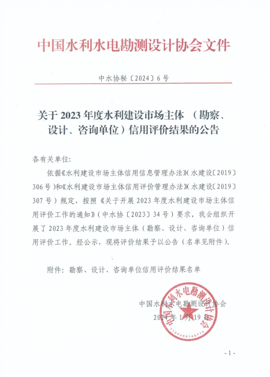 4項AAA,3項AAA+!我院在2023年度水利建設(shè)市場主體及全國水利水電勘測設(shè)計行業(yè)信用評價中再創(chuàng)佳績