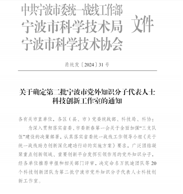近日,寧波市統(tǒng)一戰(zhàn)線助力創(chuàng)新深化建功行動(dòng)啟動(dòng)儀式在寧波院士中心舉行。啟動(dòng)儀式上,市委常委、統(tǒng)戰(zhàn)部部長(zhǎng)林雅蓮為第二批寧波市黨外知識(shí)分子科技創(chuàng)新工作室團(tuán)隊(duì)授牌。寧波市黨外知識(shí)分子科技創(chuàng)新工作室由市委統(tǒng)戰(zhàn)部會(huì)同市科技局、寧波市科協(xié)認(rèn)定。我院張預(yù)定創(chuàng)新工作室位列其中。