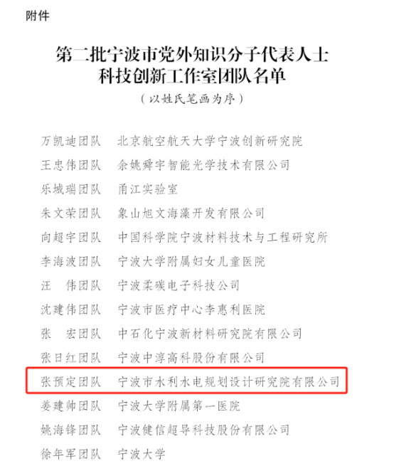 張預(yù)定創(chuàng)新工作室榮獲“寧波市黨外知識(shí)分子科技創(chuàng)新工作室”授牌,是對(duì)我院在水利領(lǐng)域深耕創(chuàng)績(jī)的肯定和認(rèn)可,也對(duì)我院將來的工作推進(jìn)提出了更高的標(biāo)準(zhǔn)和要求。為此,我院將以此為契機(jī),積極發(fā)揮榜樣團(tuán)隊(duì)的示范引領(lǐng)作用,進(jìn)一步激勵(lì)和支持廣大員工立足崗位、投身科技創(chuàng)新,以實(shí)干思維緊扣謀事成事的主旋律,以鉆研精神夯實(shí)攻堅(jiān)克難的基本功,力求在新質(zhì)生產(chǎn)力培育發(fā)展上再創(chuàng)佳績(jī),為寧波水利高質(zhì)量發(fā)展作出新貢獻(xiàn)。