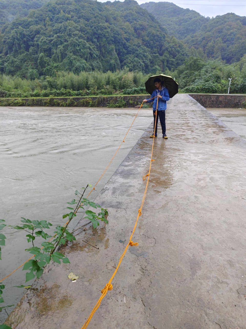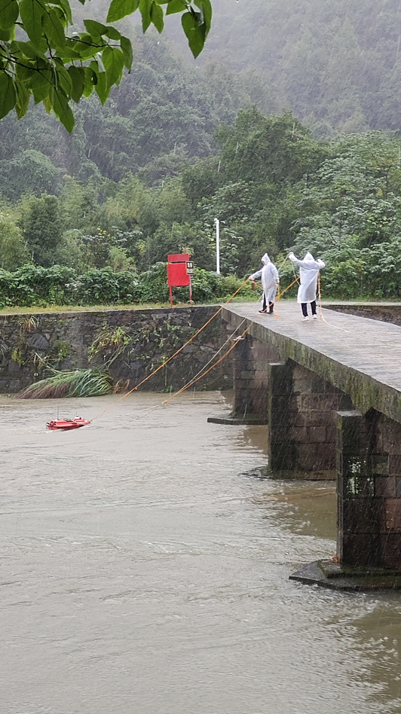 在鐘家潭進(jìn)行水文勘察與測(cè)流率定工作