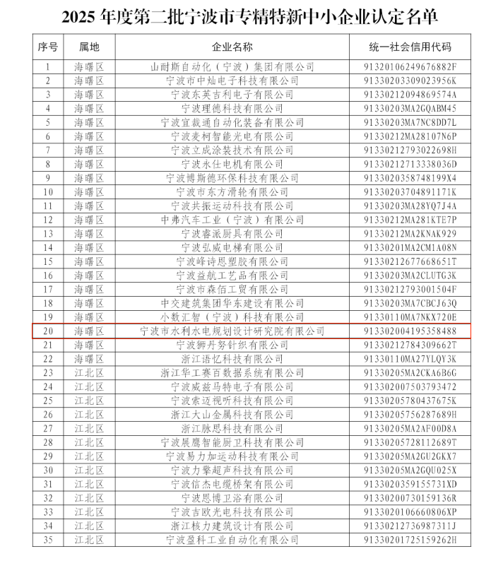 - 【喜報(bào)】我院成功獲評(píng)2025年度寧波市專(zhuān)精特新中小企業(yè)
