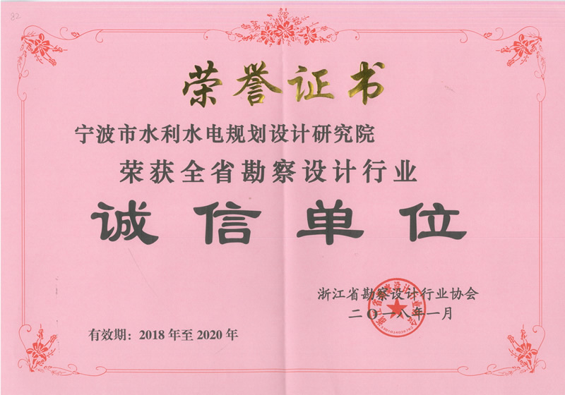 2018年度寧波市勘察市級(jí)行業(yè)優(yōu)秀誠(chéng)信單位