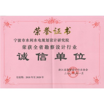 2018浙江省勘察設(shè)計(jì)行業(yè)誠(chéng)信單位證書(shū)