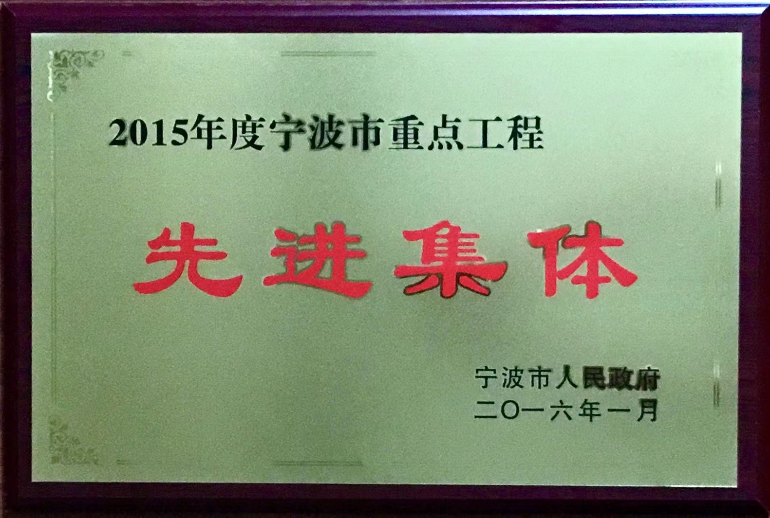 2015年度寧波市重點(diǎn)工程先進(jìn)集體