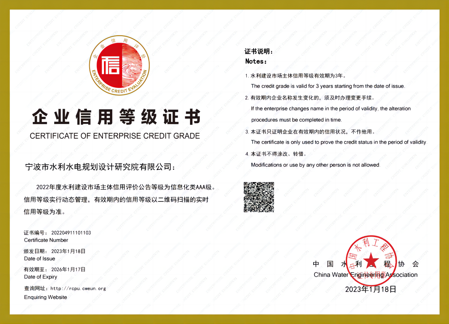 水利水電設(shè)計(jì)AAA級(jí)信用企業(yè)